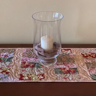 100% cotton quilting fabrics and cotton wadding allow the runner to lie flat. A 100% cotton ‘grunge’ fabric in a medium beige completes the top, backing and binding. The Full of Flowers Floral Table Runner measures 32 cm wide x 96 cm long. Machine washable and tumble dryer safe.